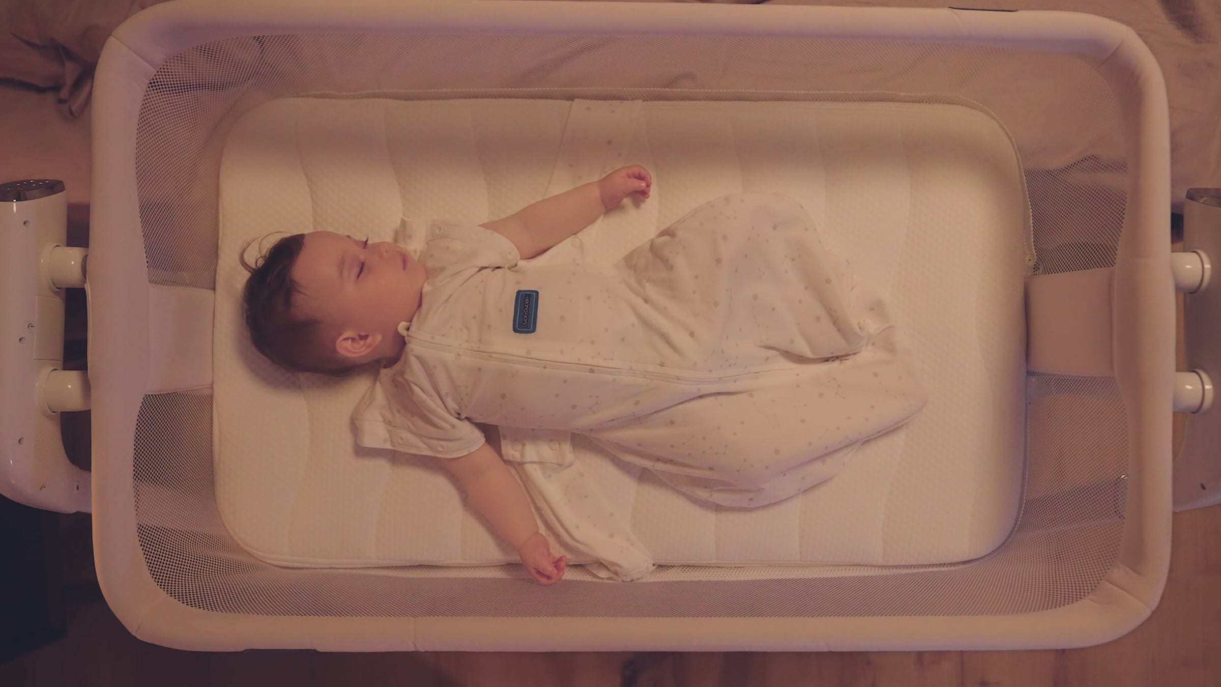 Senses baby’s cries. Soothes automatically.