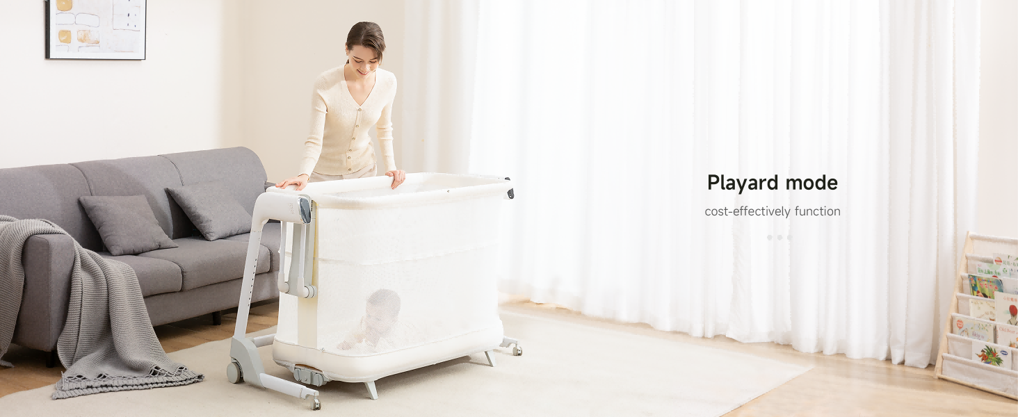 This is great. Bit pricey but worth the money. I love the baby cry feature the height I like how it transforms into a play pen so when the baby gets older I just wish there was a storage that attaches to the legs to have necessities. Close by and minimize clutter but otherwise great!