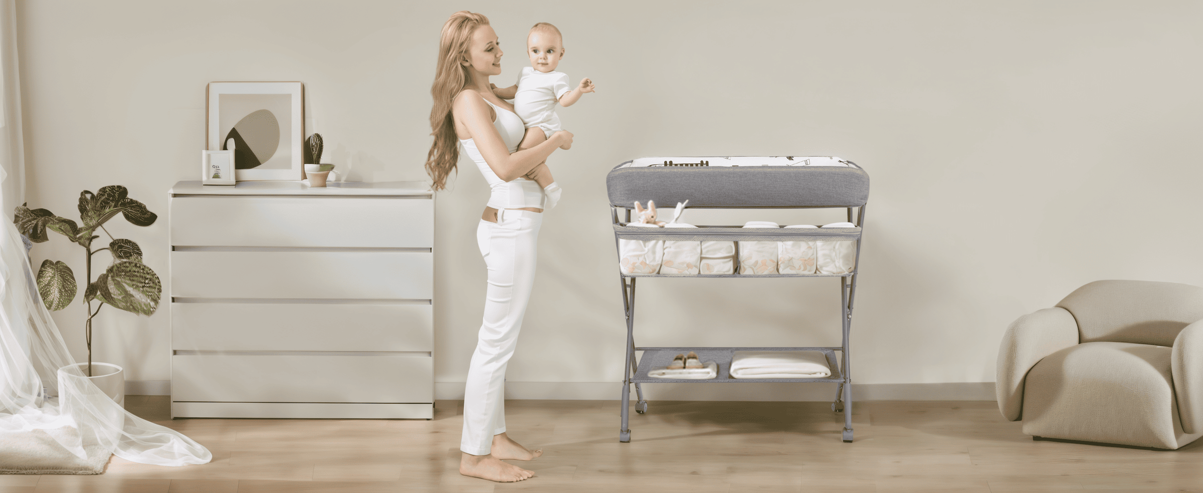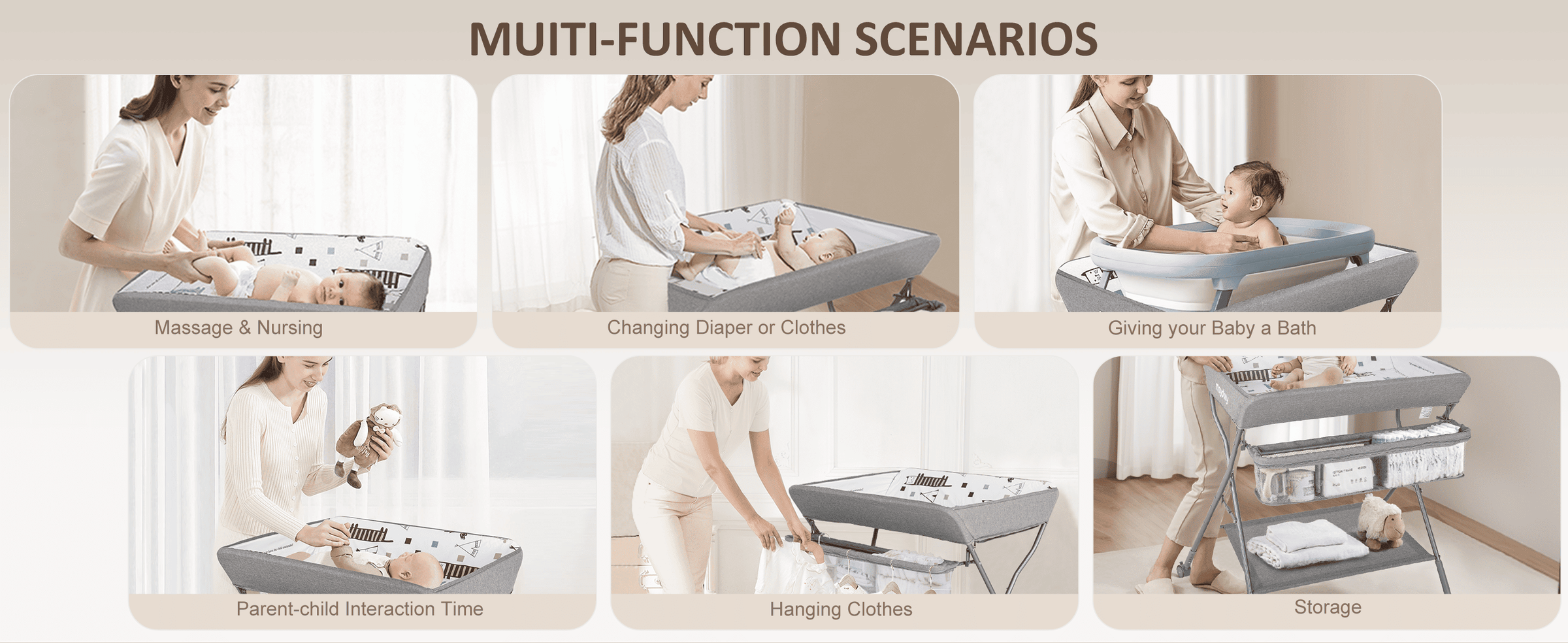 Portable and Foldable: Designed with practicality in mind, our portable table stand is super easy to fold, saving space after baby tasks are done. It's a functional and portable station for busy parents.